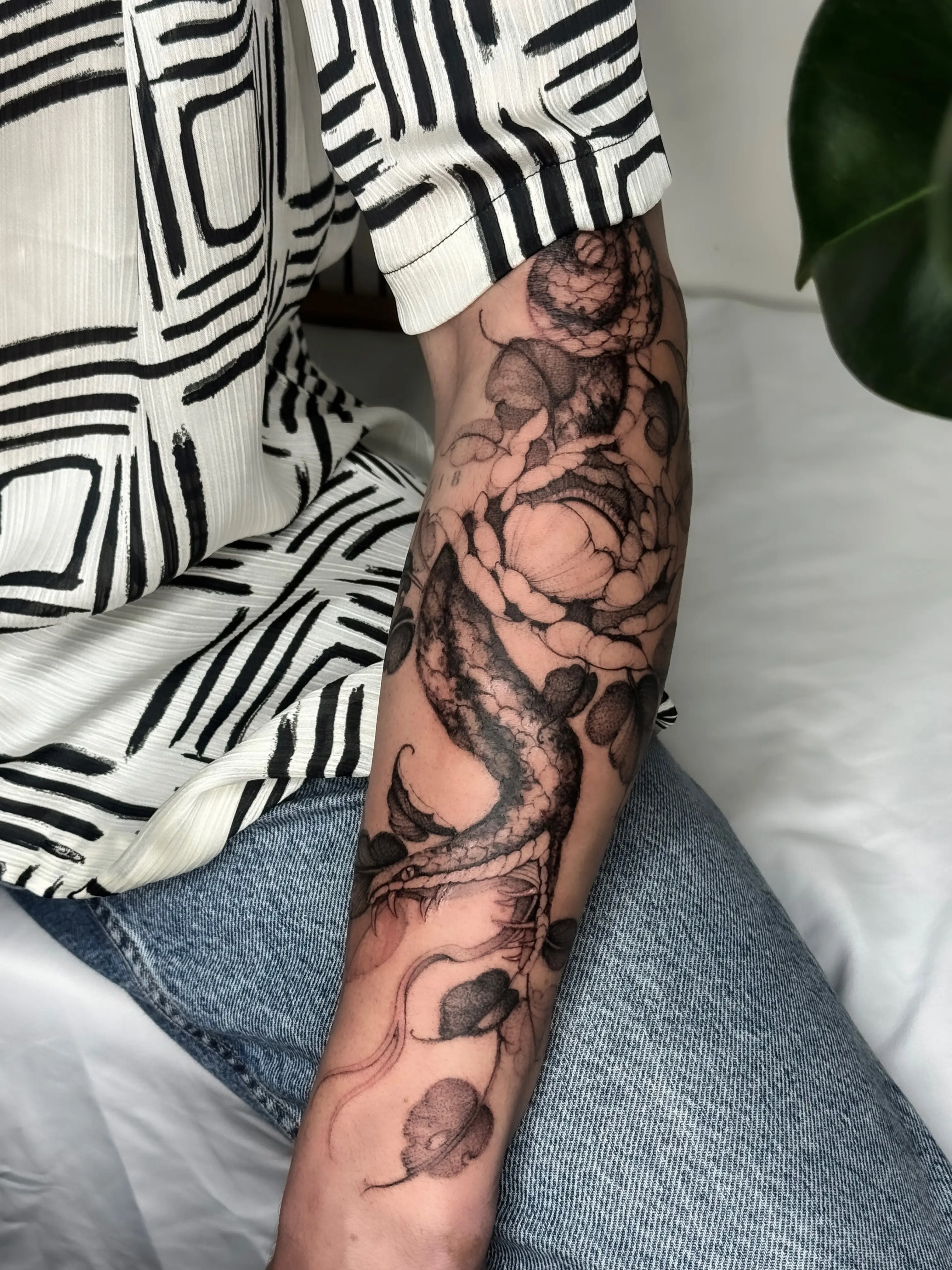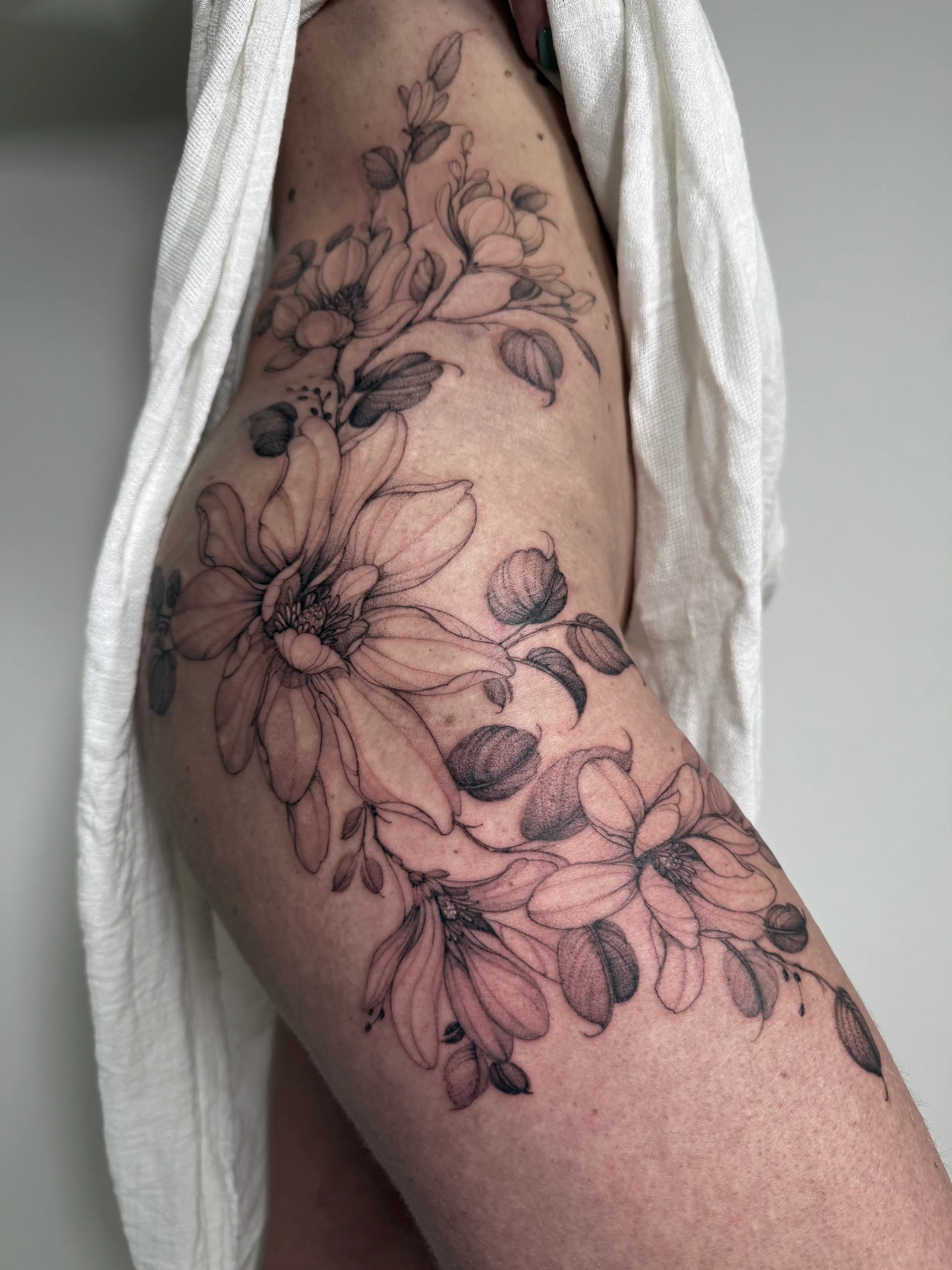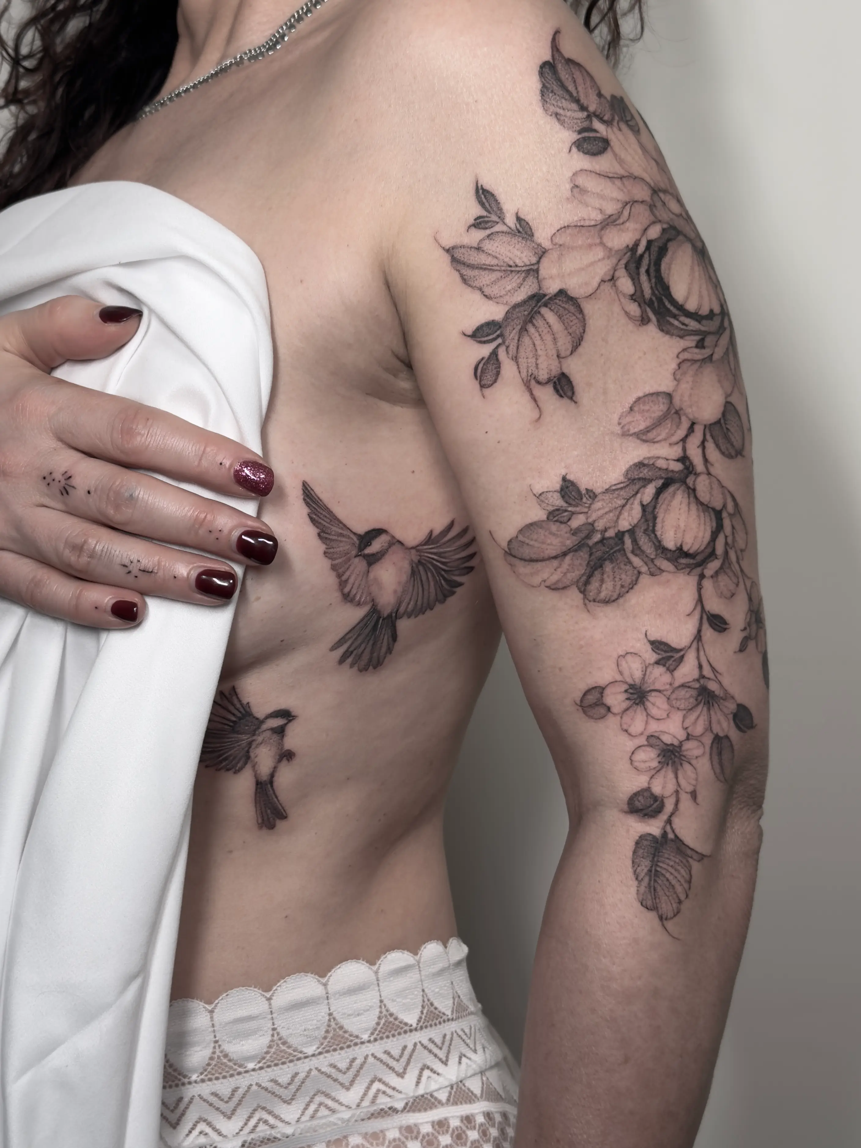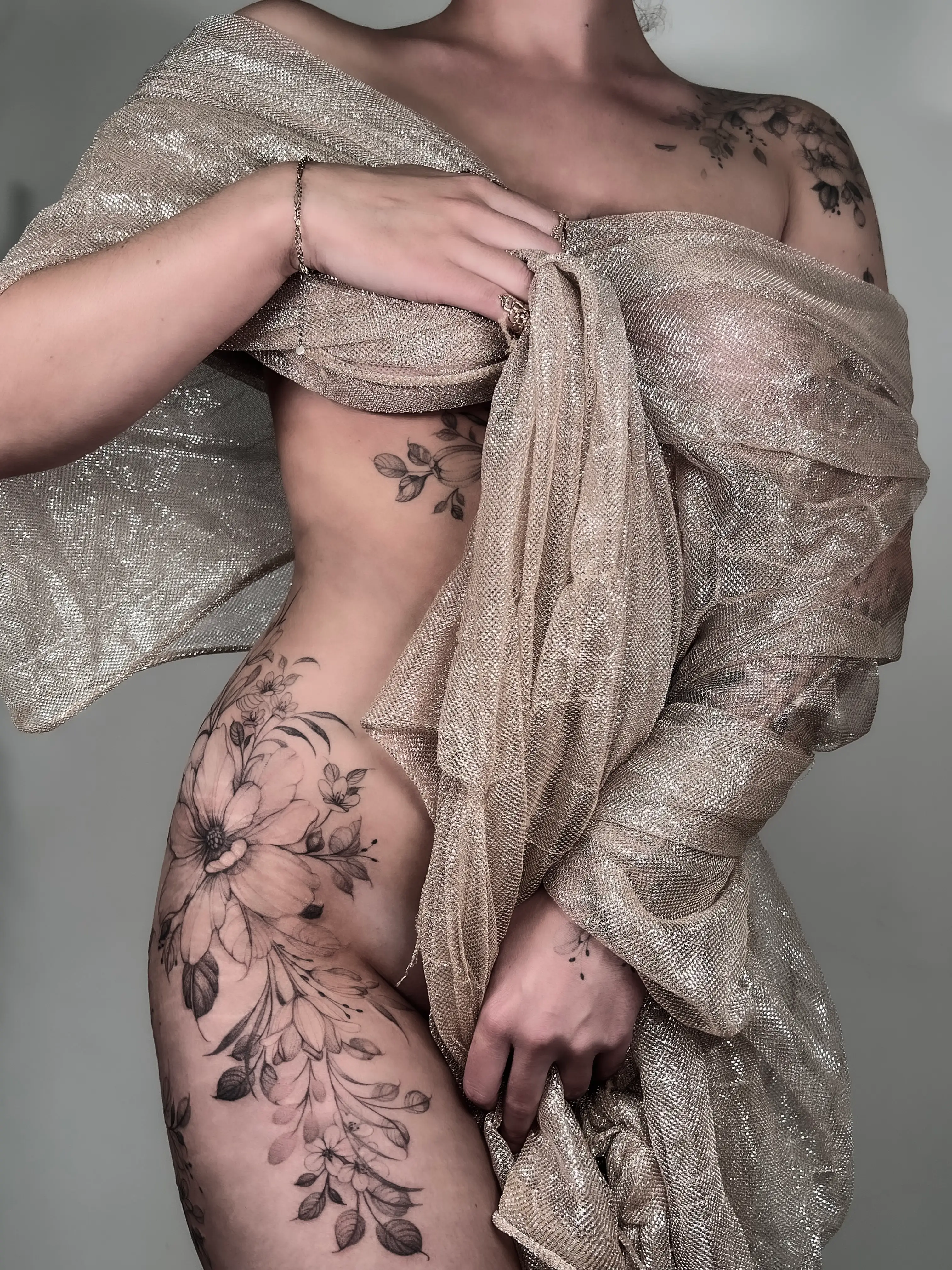 un design plus audacieux, je suis là pour vous accompagner, avec sensibilité et professionnalisme. Pour moi, tatouer c’est créer un lien, instaurer un moment de confiance puis poser un geste artistique unique. Prêt·e à ce voyage ? Je suis impatiente de vous rencontrer.